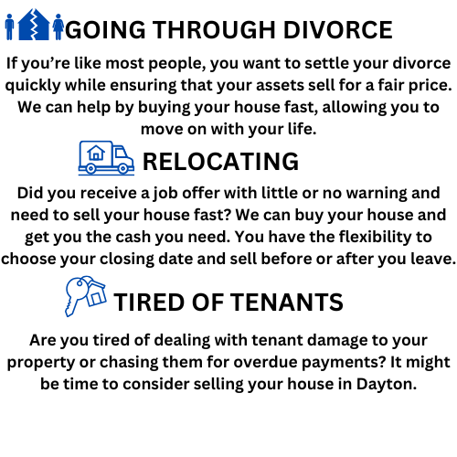Remember, we buy homes throughout the Dayton, Ohio area, in any condition and situation!